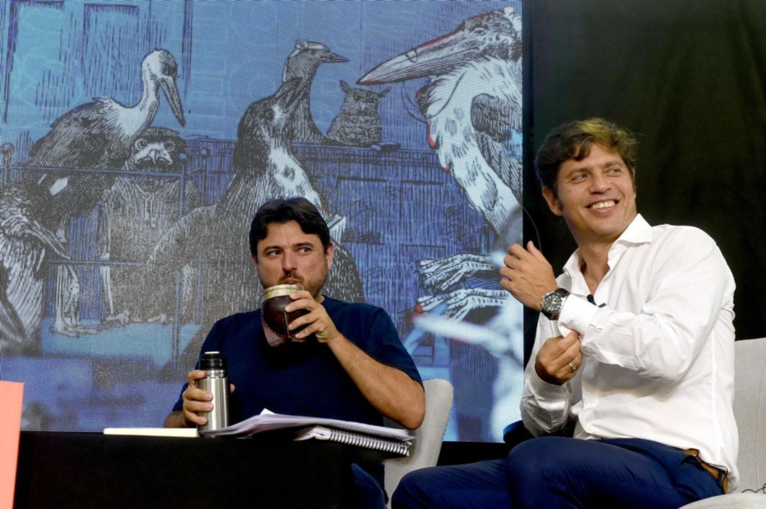 "Más allá de las discusiones sesudas, filosóficas y económicas es un libro muy valiente porque Juan reconoce críticas, errores, dificultades y eso es un montón. Es un acto de tremenda valentía. Este es un libro imprescindible para esta época", señaló Kicillof en el cierre de la presentación y luego de debatir con el dirigente sobre los distintos ejes que plantea el ensayo.