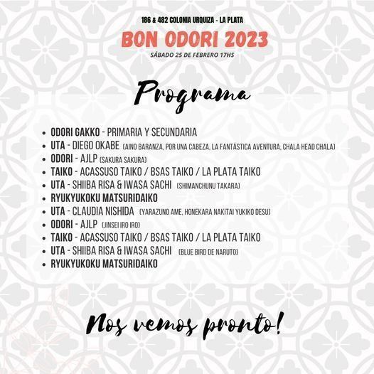 Este sábado los platenses podrán disfrutar de una nueva edición del Bon Odori, el tradicional festejo japonés volverá a llevarse a cabo nuestra ciudad después de 2 años. El evento se desarrollará desde las 17 en el predio de la Escuela Japonesa de 186 y 482, Colonia Urquiza.