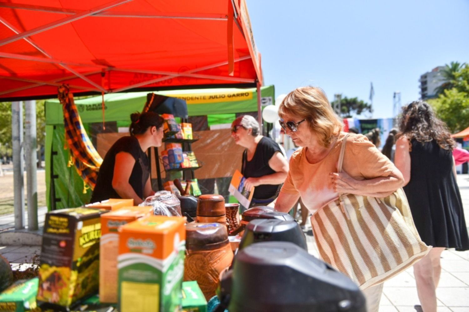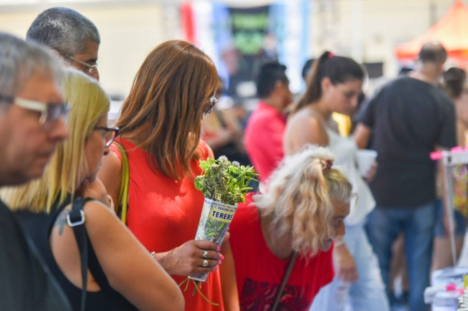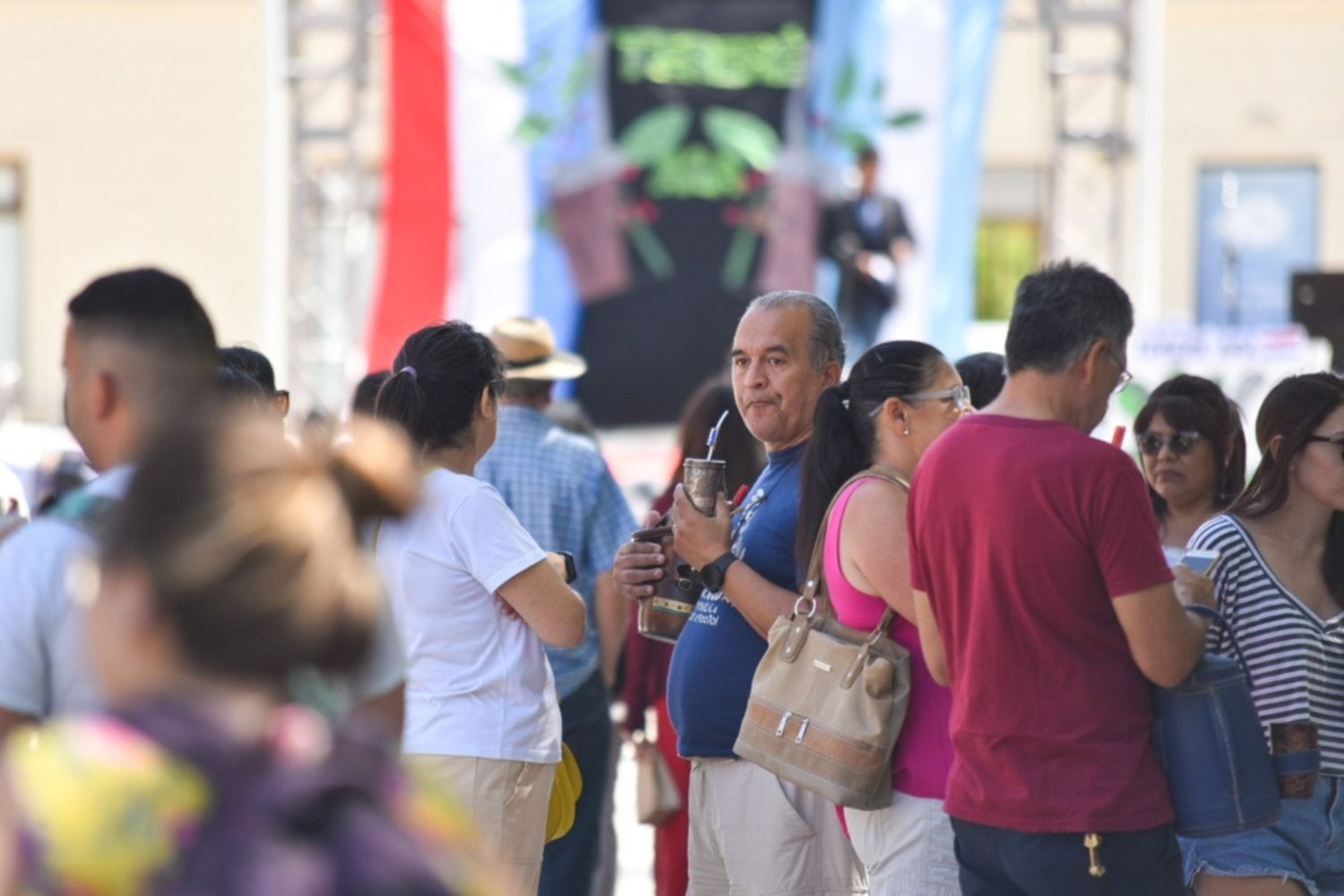 El amplio espacio que ofrece la plaza de 19 y 51 fue ideal para el despliegue de los puestos de comidas, así como del stand con información sobre esa bebida ancestral de origen guaraní.