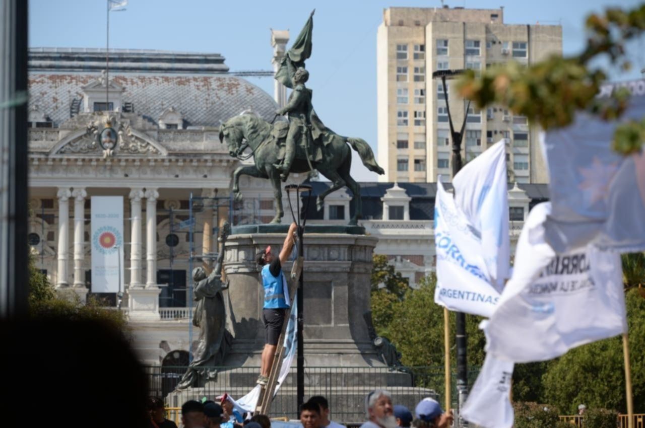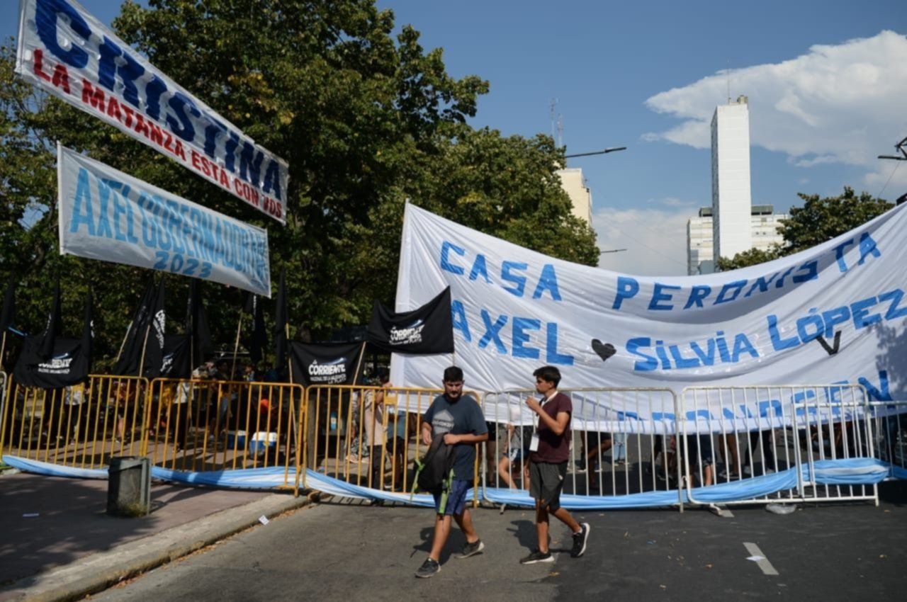 Buena parte de los militantes comenzaron a llegar a la Legislatura pasado el mediodía y muchos de ellos se concentraron en Plaza San Martín, por donde se espera que Kicillof camine desde la Gobernación hasta la Legislatura.