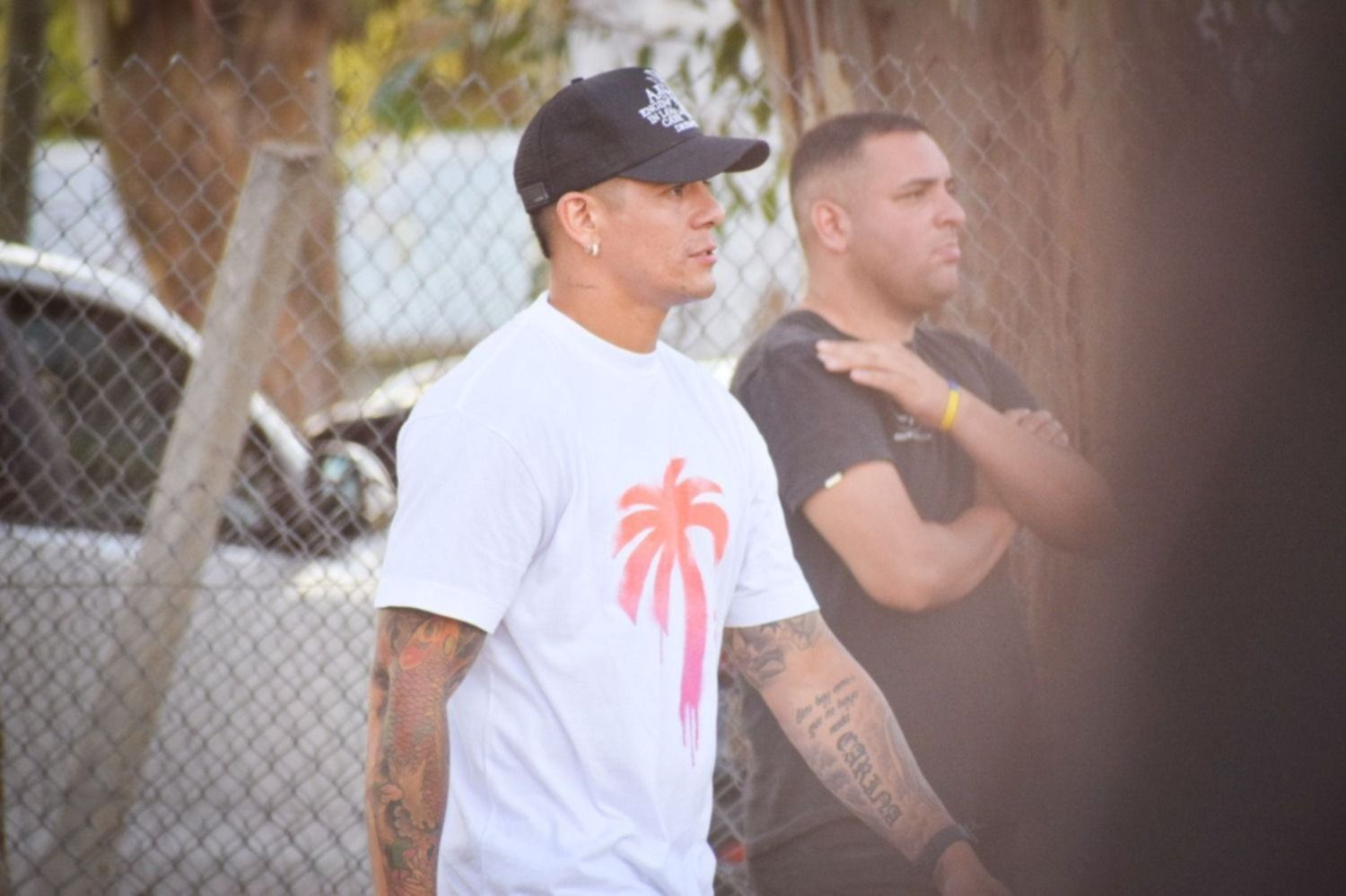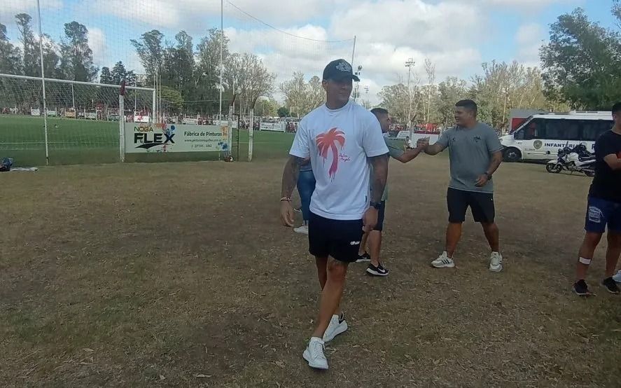 Con una remera de roja y blanca, gorra negra y con su característica simpatía, Rojo vio la victoria del Pincha pegado al alambrado, haciendo que su visita no pase desapercibida.