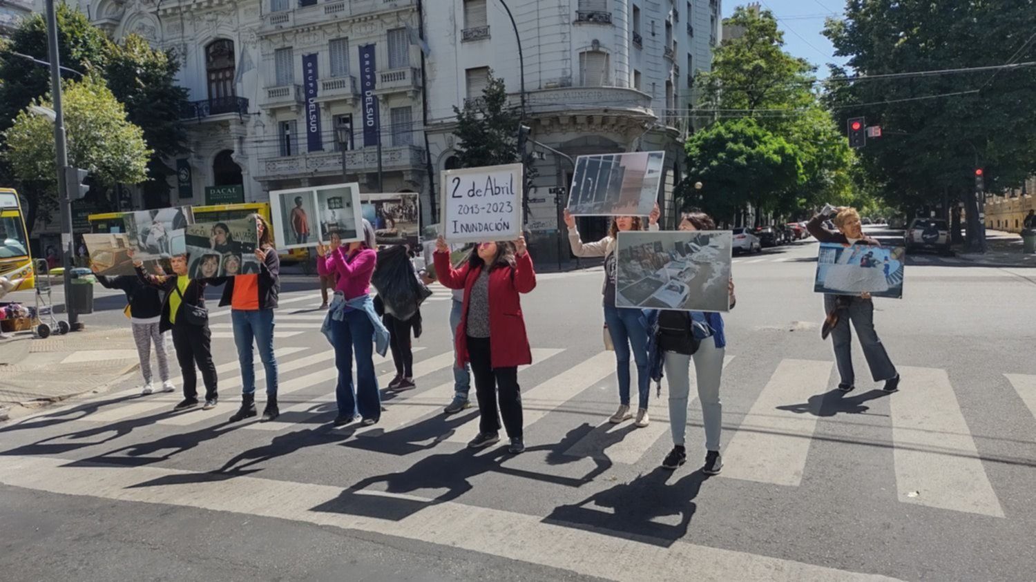 En tanto que el 18 de febrero el mismo grupo realizó una intervención callejera en pleno centro de la ciudad. Al grito "alerta", "peligro", "muertos ocultos" y reclamando un plan de contingencia con alerta temprana, el grupo se plantó en distintos semáforos con enormes fotos de la peor catástrofe natural que sufrió la capital bonaerense en toda su historia.