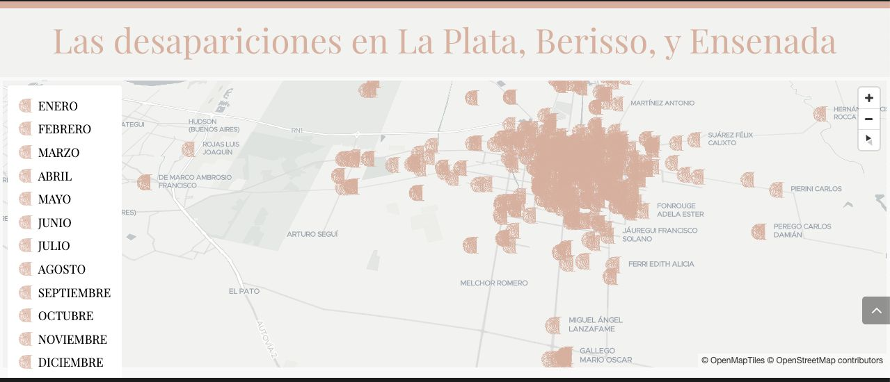 El sitio cuenta con un mapa colaborativo donde se pueden encontrar las historias de personas que habían sido secuestradas y/o asesinadas en La Plata, Berisso y Ensenada durante la última dictadura, una base de 758 casos que se tienen contabilizados en la región en el Registro Unificado de Víctimas del Terrorismo de Estado (RUVTE).