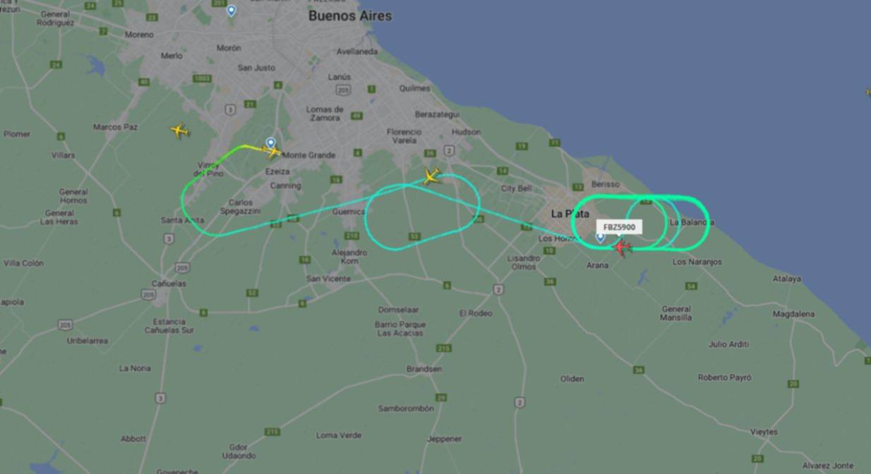 El 25 de febrero pasado un avión de la empresa Flybondi realizó un recorrido similar sobre el cielo platense, aunque en ese caso se debió a una falla mecánica que obligó a los pilotos a regresar al Aeropuerto de Ezeiza, de donde había partido con destino a Florianópolis, en Brasil.