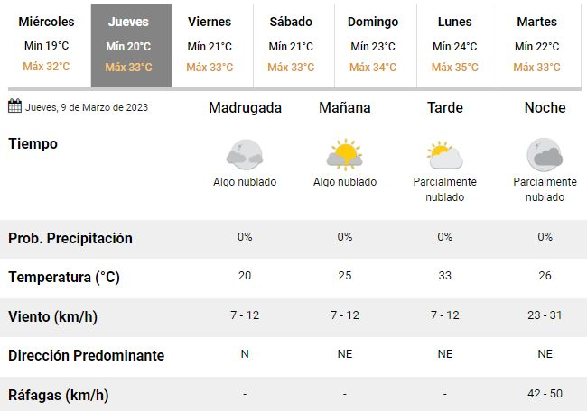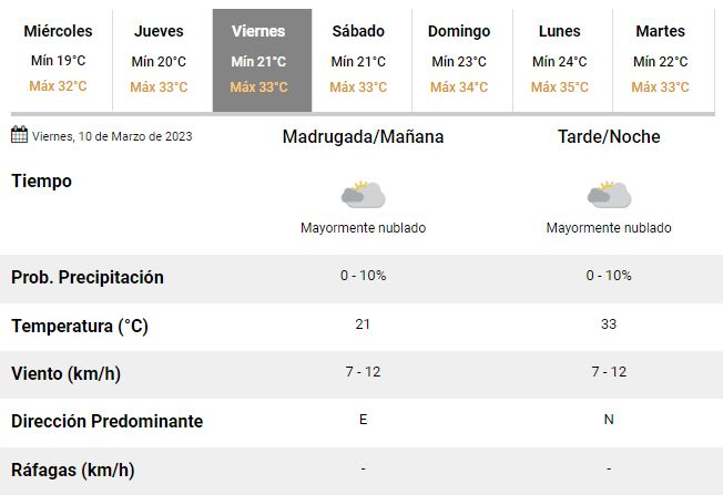 Lejos de disminuir, además, se espera que durante el fin de semana las temperaturas aumenten todavía más y la máxima llegue a 34°C el próximo domingo, en la previa de un lunes nublado pero con una máxima de hasta 35°C en la ciudad.
