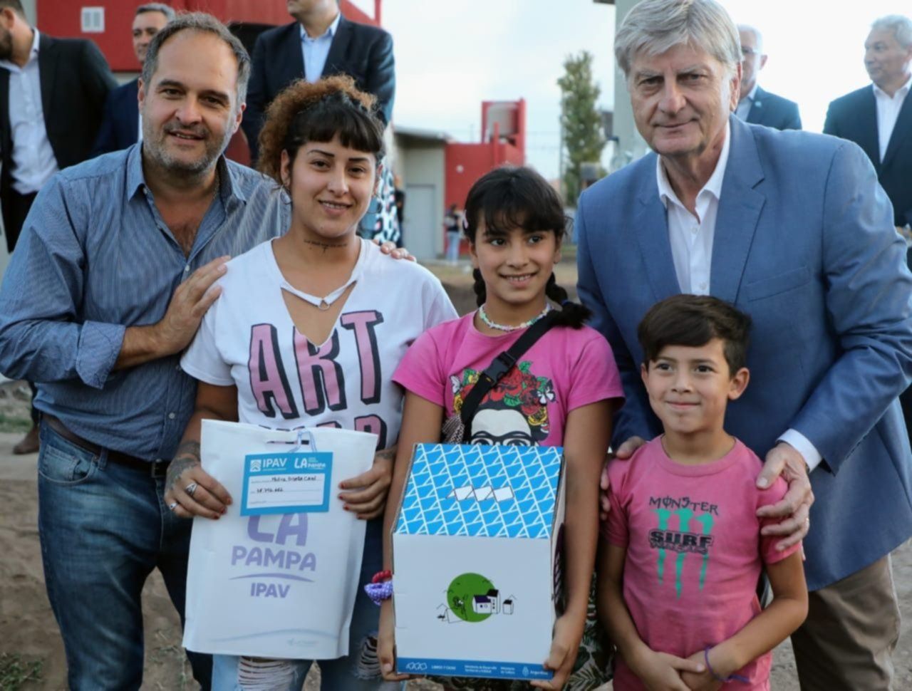 Maggiotti y Ziliotto, junto al secretario de Coordinación del Ministerio de Desarrollo Territorial y Hábitat, Marcos Aguilar y al presidente del Instituto Provincial Autárquico de Vivienda (IPAV), Jorge Lezcano, encabezaron esta tarde un acto donde 40 familias del mencionado municipio pampeano recibieron las llaves de su flamante hogar. Además, en el marco del Programa Federal Casa Propia, el Ministro le entregó al gobernador la autorización administrativa para avanzar con la construcción de 280 viviendas en Santa Rosa, y juntos suscribieron un convenio por el cual se ejecutarán otras 200 unidades en la localidad de General Pico.