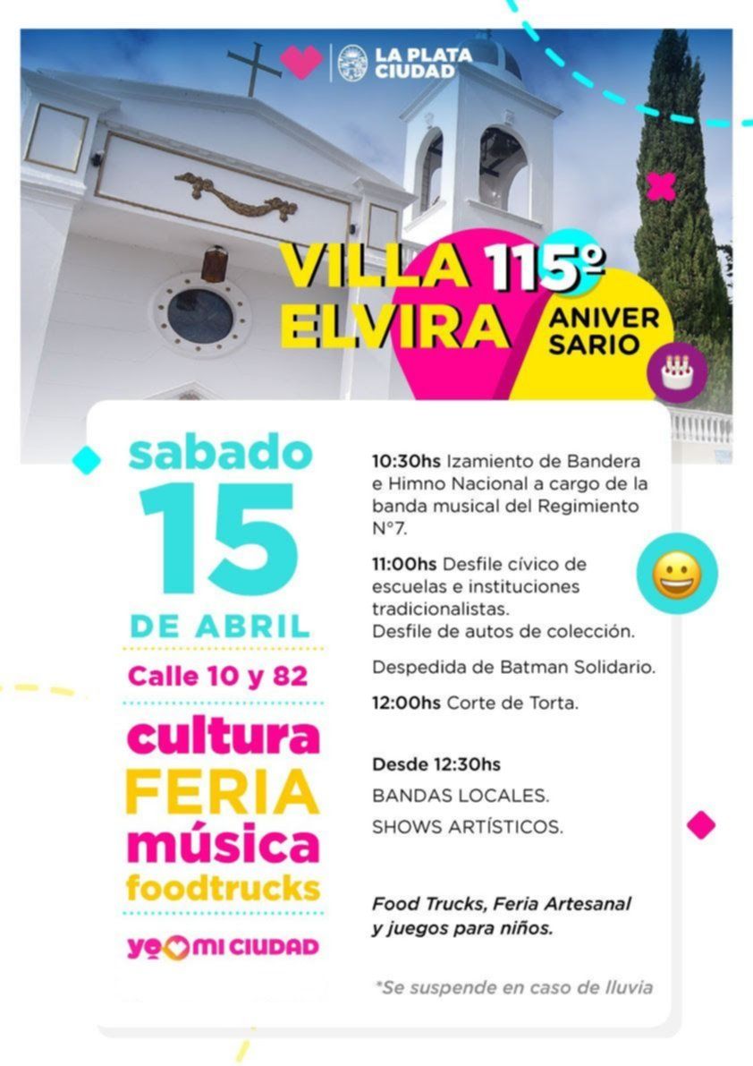 Habrá un desfile tradicionalista, otro de autos de colección y un acto de despedida al Batman Solidario, oriundo de Villa Elvira, quien anunció recientemente su retiro. En el marco del festejo, además, varias bandas locales brindarán conciertos en vivo, se desplegarán food trucks con propuestas gastronómicas para todos los gustos y se dispondrá una gran variedad de juegos para el disfrute de los más chicos.