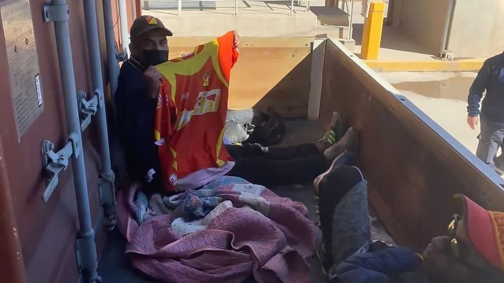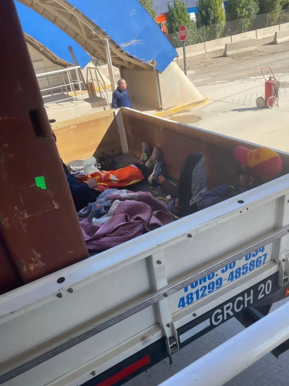 Así fue cómo se detectó a los dos colombianos ocultos que viajaban tapados con colchas, mantas y barbijos y estaban ubicados entre el final del contenedor y la tapa del vehículo.