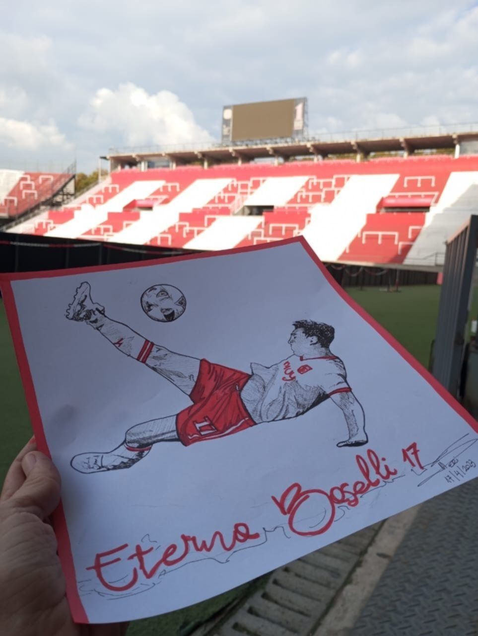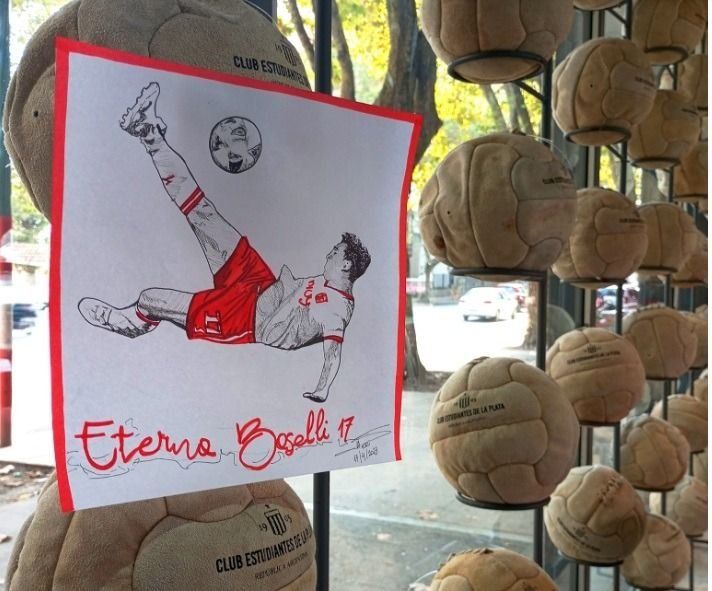 "Después de que lo dibujé pensé en dejarlo ahí, entre las pelotas que están firmadas por jugadores, porque no me lo quería llevar, era como que el dibujo me pedía quedarse ahí y lo dejé", explica Érica, que tituló su obra a mano alzada "El Eterno Boselli". La misma que minutos más tarde comenzó a ser fotografiada por distintos hinchas de Estudiantes que lo compartieron en redes sociales e hicieron eco de ello.