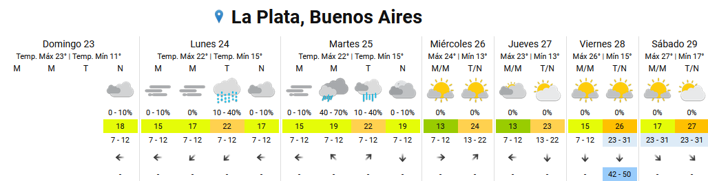 Por último, los expertos pronosticaron que el sábado será muy similar al viernes aunque algo más cálido. Los vientos continuarán en consecuencia con lo que pasará el día anterior y la máxima será de unos calurosos 27°C en una jornada de cielo nublado.