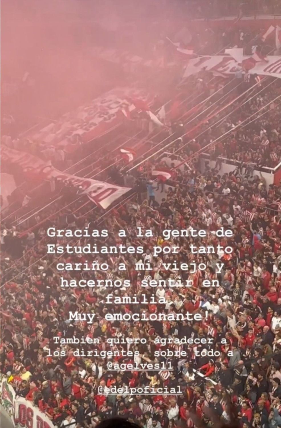 "Gracias a la gente de Estudiantes por tanto cariño a mi viejo y hacernos sentir en familia. Muy emocionante. También quiero agradecer a los dirigentes, sobre todo a Luis Alvarez Gelves", expresó Daniela, hija de Carlos, en un Instagram personal junto a una imagen del recibimiento de los hinchas.