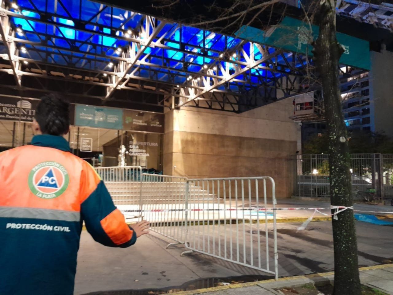 Momentos de tensión se vivieron este domingo por la tarde en el Teatro Argentino, luego de que se produjera el desprendimiento del techo de vidrio externo del recinto, en medio del temporal de viento. Según informaron fuentes policiales a 0221.com.ar, el incidente motivó la intervención de Bomberos, agentes de la Dirección de Riesgos Especiales, Protección Civil y agentes de Tránsito de la Comuna, además de ambulancias.