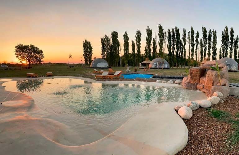 Glamping-bar Las Goya, o Glamorous Camping brinda a los turistas la experiencia de acampar al aire libre con el lujo que ofrecen los hoteles. Esta propiedad cuenta con cuatros domos y un vagón para seis personas. Además tiene baños con termotanques solares, biopiscina en la que el agua se recicla y una zona para nadar, separadas por un muro donde el agua circula a través de bombas y filtros; por lo que resulta una propuesta sustentable.