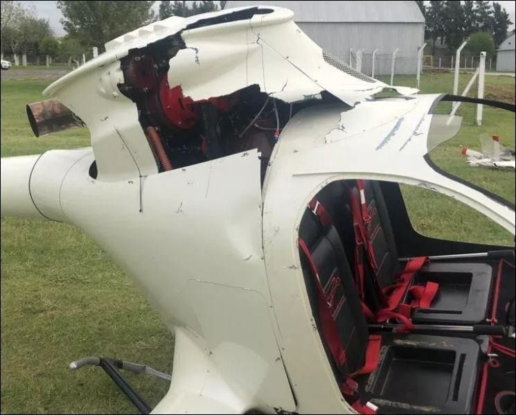 Por causas que son materia de investigación, la nave comenzó a precipitarse y finalmente golpeó el suelo, provocando el asombro de los presentes. Las fuentes informaron que la aeronave es un helicóptero FAMA KISS 209 MF, identificado con la matrícula LV-X695. De milagro el episodio no terminó en tragedia y el piloto sobrevivió al impactante accidente.