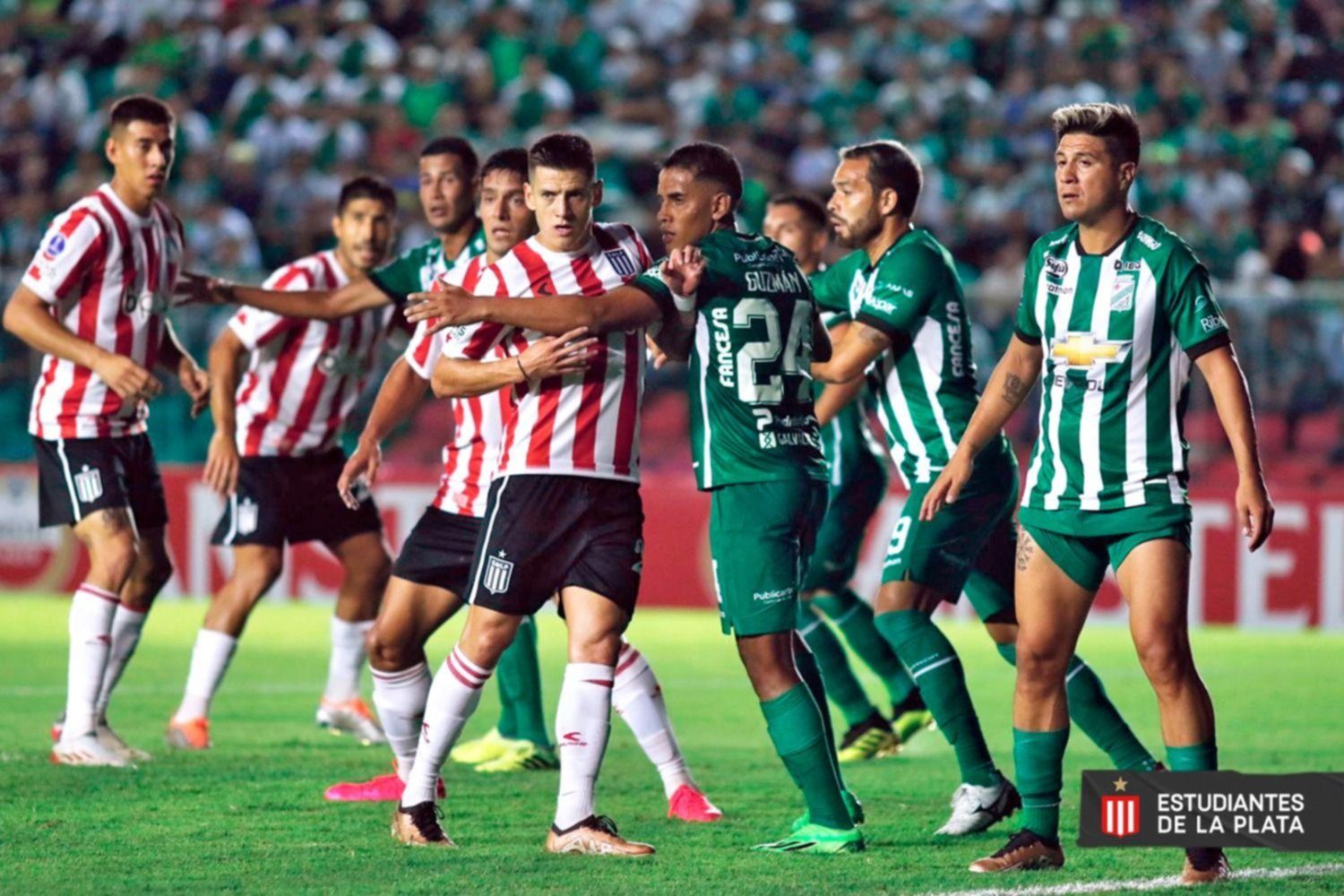 Con uno menos, Domínguez armó línea de cuatro con el ingreso de Mas, pasó a Benedetti a la mitad de cancha y retrasó a Zuqui para jugar pegado a Rodríguez. En el primer cuarto de hora, Oriente Petrolero se adelantó pero la más clara la tuvo a los 14 Estudiantes con un remate de Zuqui desde afuera del área.