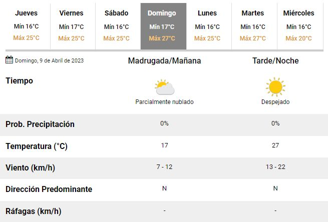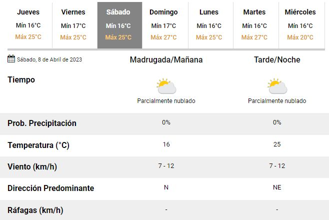 En tanto, para el sábado pronostican un clima muy similar, húmedo y nublado y y con una temperatura que oscilará ente 17 y 25°C y para el domingo se prevé un leve ascenso de las temperaturas, con una mínima de 17°C y una máxima de hasta 27°C, con un cielo ya despejando hacia la tarde noche.