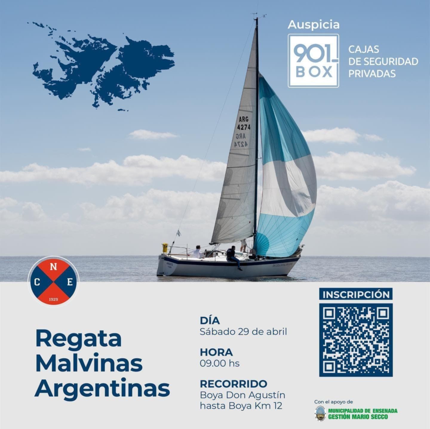 En el marco de los 41 años de la guerra de Malvinas, el Club Náutico Ensenada organiza la segunda edición de la "Regata Malvinas Argentinas", en honor a los héroes que combatieron por Argentina. El evento se realizará el próximo sábado 29 de abril y los interesados en participar podrán inscribirse hasta el viernes 28 a las 15.