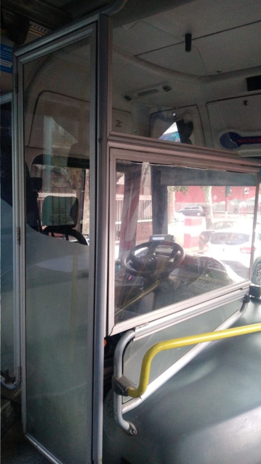 "Cabina para el conductor en el vehículo línea Oeste", escribió un ingeniero platense que se vio sorprendido en las últimas horas por una particular escena a bordo de una de las unidades de la empresa Nueve de Julio SAT y compartió en las redes sociales una foto en la que se puede ver al chofer rodeado de varias paredes de acrílico, que lo separan del resto de la unidad.
