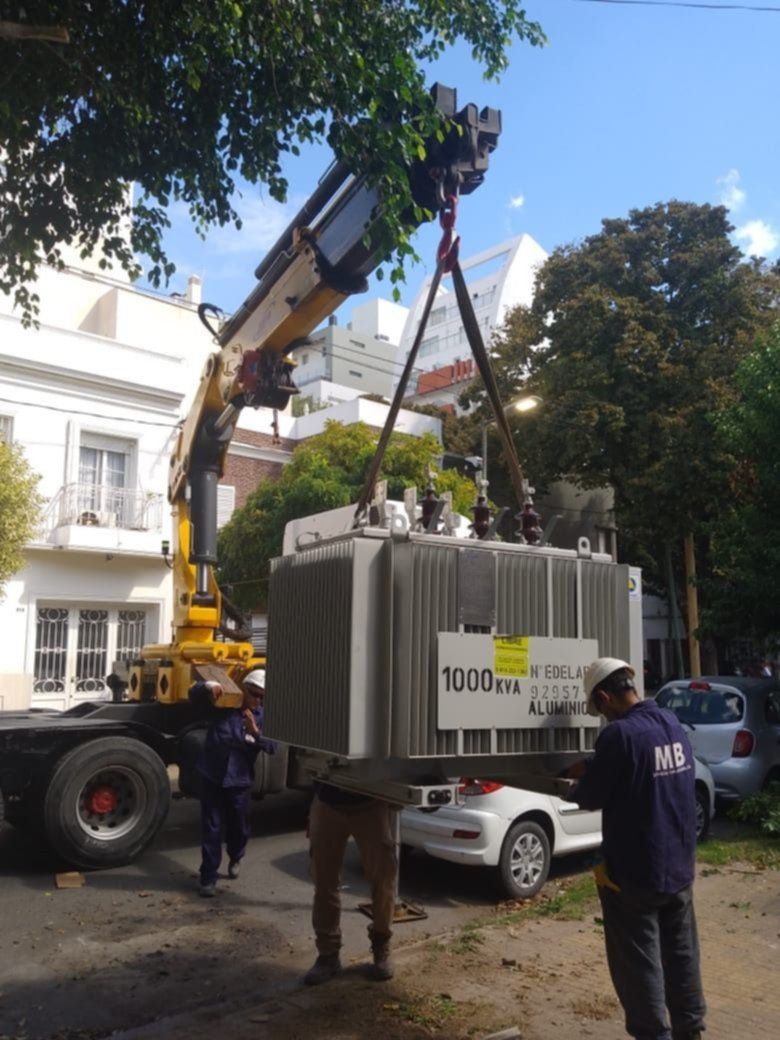 Mientras tanto, en la zona de 13 y 61 el personal desplegó maquinaria especializada para la instalación, configuración y puesta en servicio de un nuevo transformador de 1.000 kVA de última tecnología.