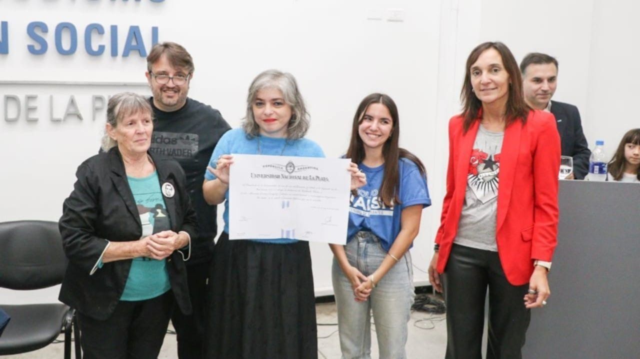 De la premiación participaron el vicedecano de la FPyCS, Carlos Ciappina, y demás autoridades de nuestra casa de estudios. Asimismo asistieron al acto docentes, graduados/as/es y estudiantes, entre otros/as.