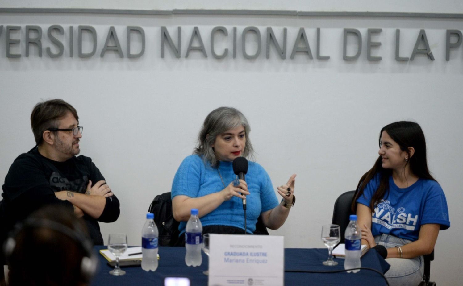 La Facultad de Periodismo y Comunicación Social de la UNLP reconoció a la escritora, periodista y docente Mariana Enriquez como Graduada Ilustre. La ceremonia, se llevó a cabo en el aula Anfiteatrada del edificio ubicado en diagonal 113 esquina 63 y contó con la participación del director de Ediciones de Periodismo y Comunicación Ulises Cremonte y la consejera estudiantil de la Agrupación Rodolfo Walsh Rocío Rodríguez, quienes acompañaron a la destacada escritora en la entrevista abierta.