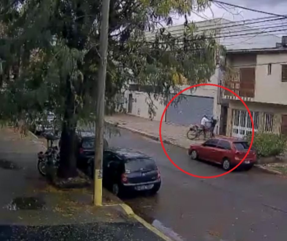 La escena que se ve en el video captado por una cámara de seguridad particular es extremadamente violenta. Se ve al ciclista pasar cerca de la mujer que camina por la vereda y de repente vuelve para acercarse a ella y emprenderla a golpes. La mujer no sale de su asombro y termina tirada en el piso. También se observa que el agresor recoge al perro caniche con el que anda y lo coloca en el canasto de la bicicleta, mientras que otro vecino se acerca para intentar ayudar a la víctima, hasta que el atacante finalmente se va del lugar.