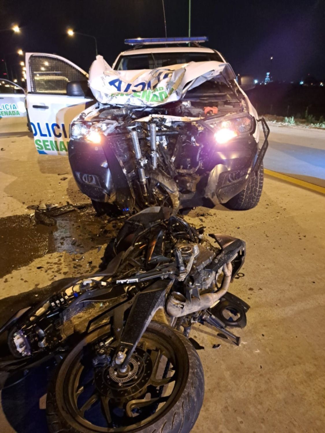 Como consecuencia del choque, el menor de 17 años debió ser trasladado inconsciente por el SAME al hospital, donde se constataron fracturas en su piernas y muñecas y, un traumatismo en el tórax. El joven se encuentra internado en terapia intensiva, con asistencia respiratoria. En tanto, el segundo menor, de 15 años, también debió ser hospitalizado, producto de un traumatismo en la pelvis,. Los oficiales a bordo del patrullero también sufrieron traumatismos, pero se encuentran fuera de peligro.