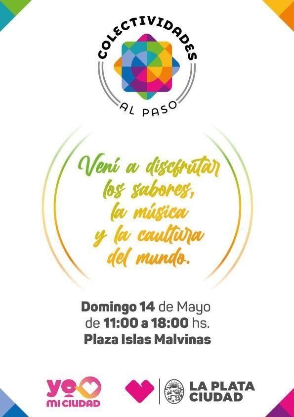 Una nueva edición de "Colectividades al Paso" desembarca en plaza Islas Malvinas, ubicada en 19 y 51, La Plata. La Municipalidad llevará a cabo una nueva edición este domingo 14 de mayo, de 11 a 18, en el evento los platenses podrán disfrutar de actividades recreativas, espectáculos en vivo y un corredor gastronómico para disfrutar de los sabores, la música y la cultura del mundo.