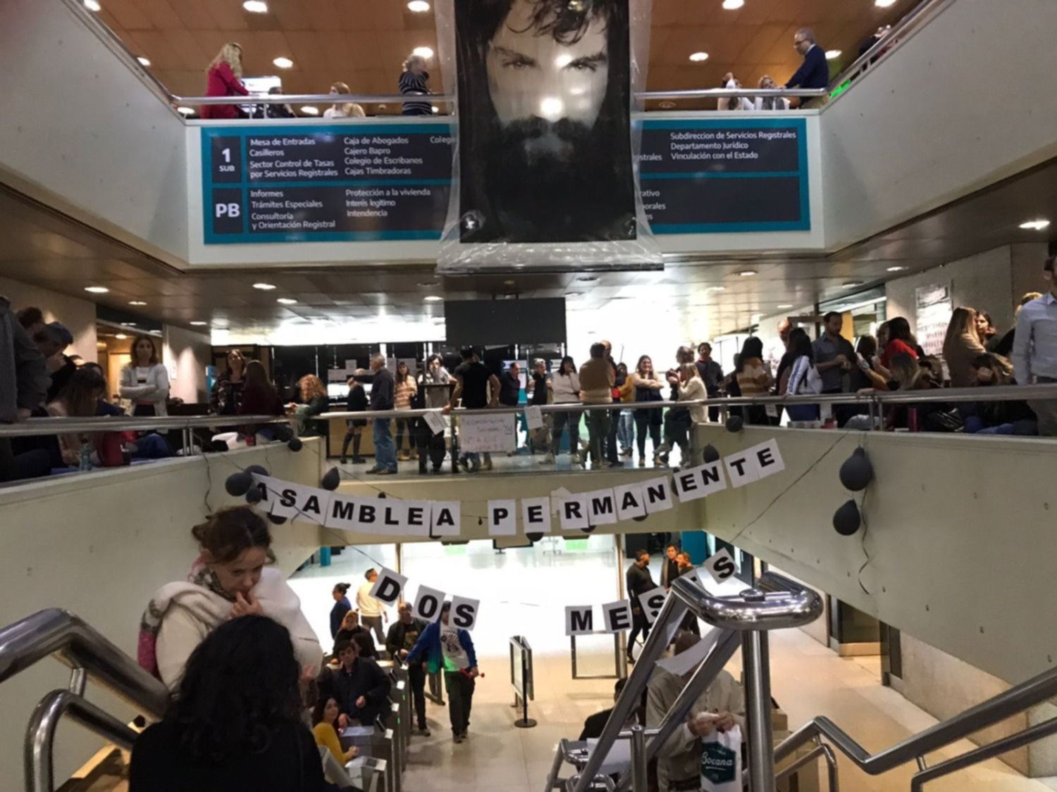 "Nosotros presentamos una nota avalada por 600 firmas, triplicando la representatividad que tienen los gremios, y desde el Ministerio de Trabajo desconocieron la representatividad de la Asamblea por no estar bajo el estamento de alguno de los gremios", indicaron los trabajadores del Registro de la Propiedad, quienes manifestaron que luego de la medida de fuerza del 3 de mayo, se incrementaron las amenazas telefónicas por parte de GEDEBA realizadas desde adentro del edificio, por lo que no pueden ser identificadas.