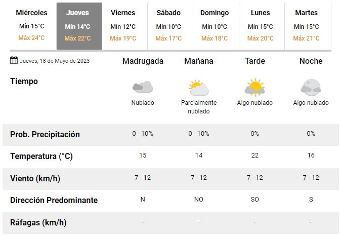 El miércoles amaneció algo fresco en La Plata pero con el correr de las horas la temperatura volverá a subir hasta ubicarse en los 24°C. De acuerdo con los especialistas del SMN, tanto este miércoles como el próximo jueves continuarán sin contratiempos y recién desde la tarde del viernes podrían volver las lluvias a la región.