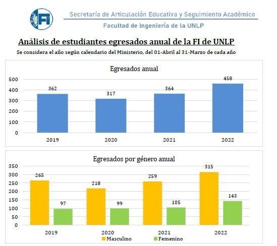 La Facultad de Ingeniería de la Universidad Nacional de La Plata reveló que en 2022 se graduaron un total de 458 profesionales, de los cuales 143 son mujeres. La cifra batió el récord de 2021 con un total de 364 recibidos y, según refirió la casa de altos estudios, el número de ingresantes mujeres alcanzó un 24%, mientras que los egresos de ingenieras conforman el 30% de la cifra total.