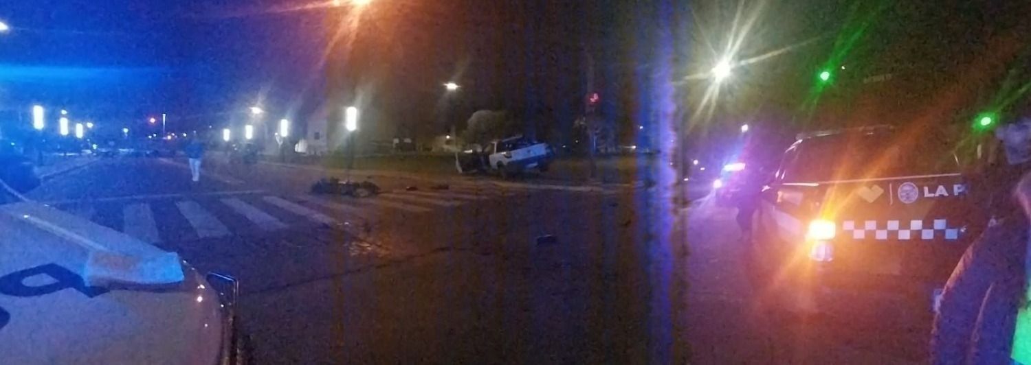 Un tremendo choque se produjo durante la madrugada de este lunes, cuando una camioneta y una moto impactaron entre sí, dejando al conductor del rodado más pequeño con graves lesiones.