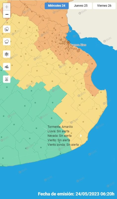 El Servicio Meteorológico Nacional activó durante la últimas horas de la madrugada de este miércoles un alerta naranja por las fuertes tormentas que comenzaron a registrarse en La Plata y toda la región después de las 6:30, en tanto en la ciudad comenzó a llover con intensidad pocos minutos antes de las 7.