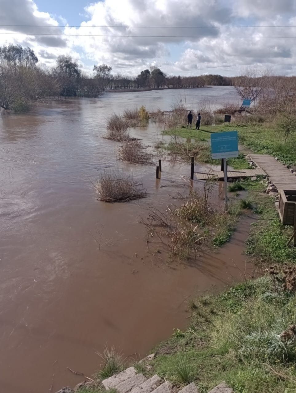 Un vecino de la zona envió varios videos donde se ve el agua bajando con fuerza desde los bordes hacia el cauce y manifestó que el hecho le provocó “una gran alegría” porque este sábado va a poder navegar el arroyo en kayak.