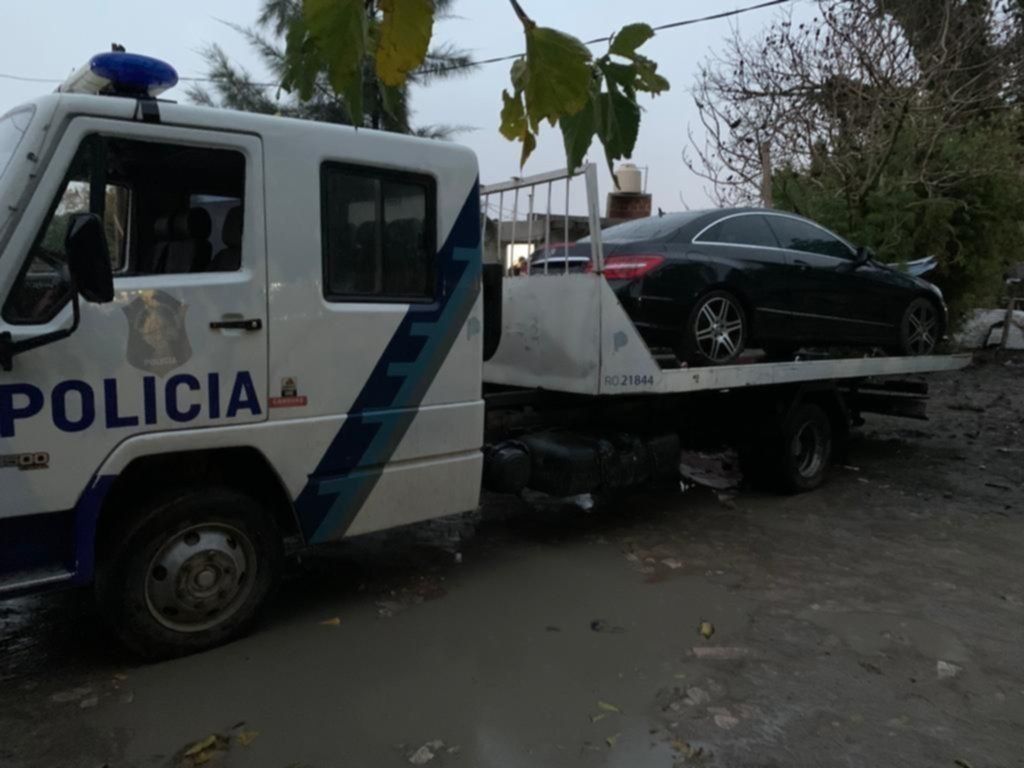 Luego de irrumpir en la vivienda, los uniformados encontraron varios vehículos sustraídos en distintos robos, entre los que se destacaba un Mercedes Benz negro robado en la localidad bonaerense de Merlo.