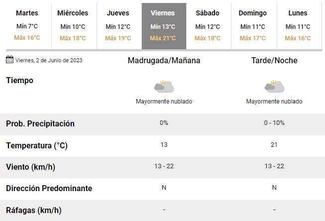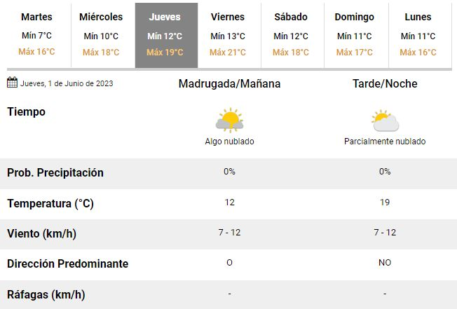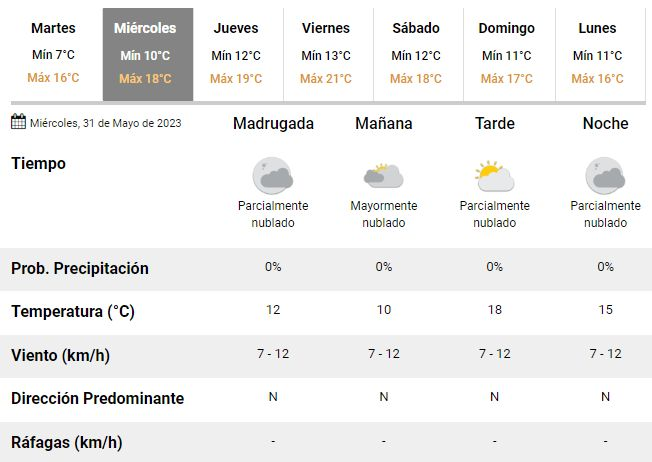 El SMN pronostica una jornada con cielo de parcial a mayormente nublado y una humedad de más del 90%. Será el día más frío de los que le restan a esta semana de finales de mayo y principios de junio.