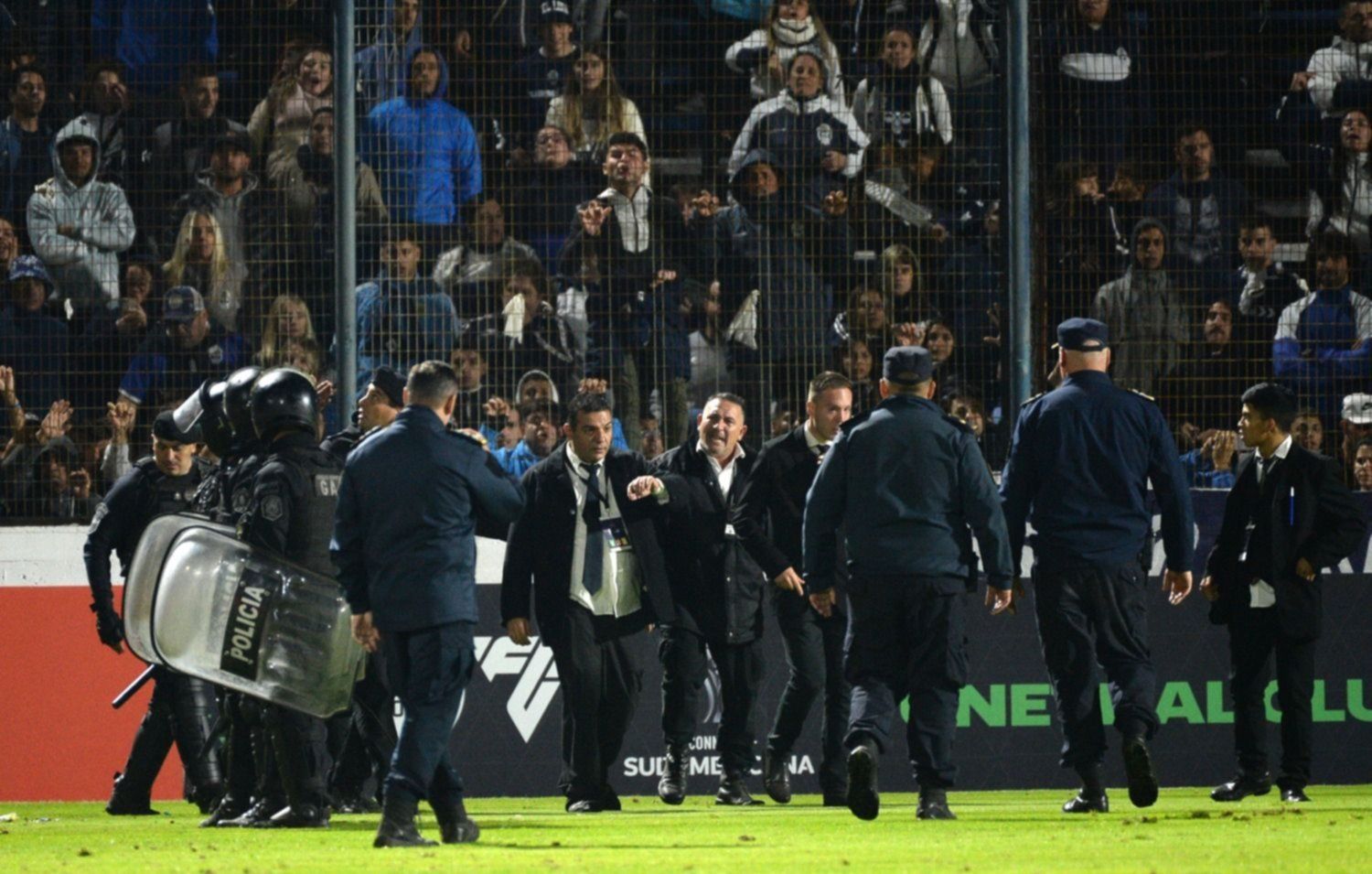 Cegados por la bronca por la derrota y un arbitraje, cuando menos, cuestionable, en un primer instante los hinchas triperos creyeron que se trataba de un empleado de la CONMEBOL, por lo que la actitud desató una andanada de insultos contra la organización; pero lo cierto es que más tarde se supo que en realidad se trataba de un empleado tercerizado que forma parte de la seguridad privada que contrató el propio club a fines de poder resguardar la seguridad de la gente.