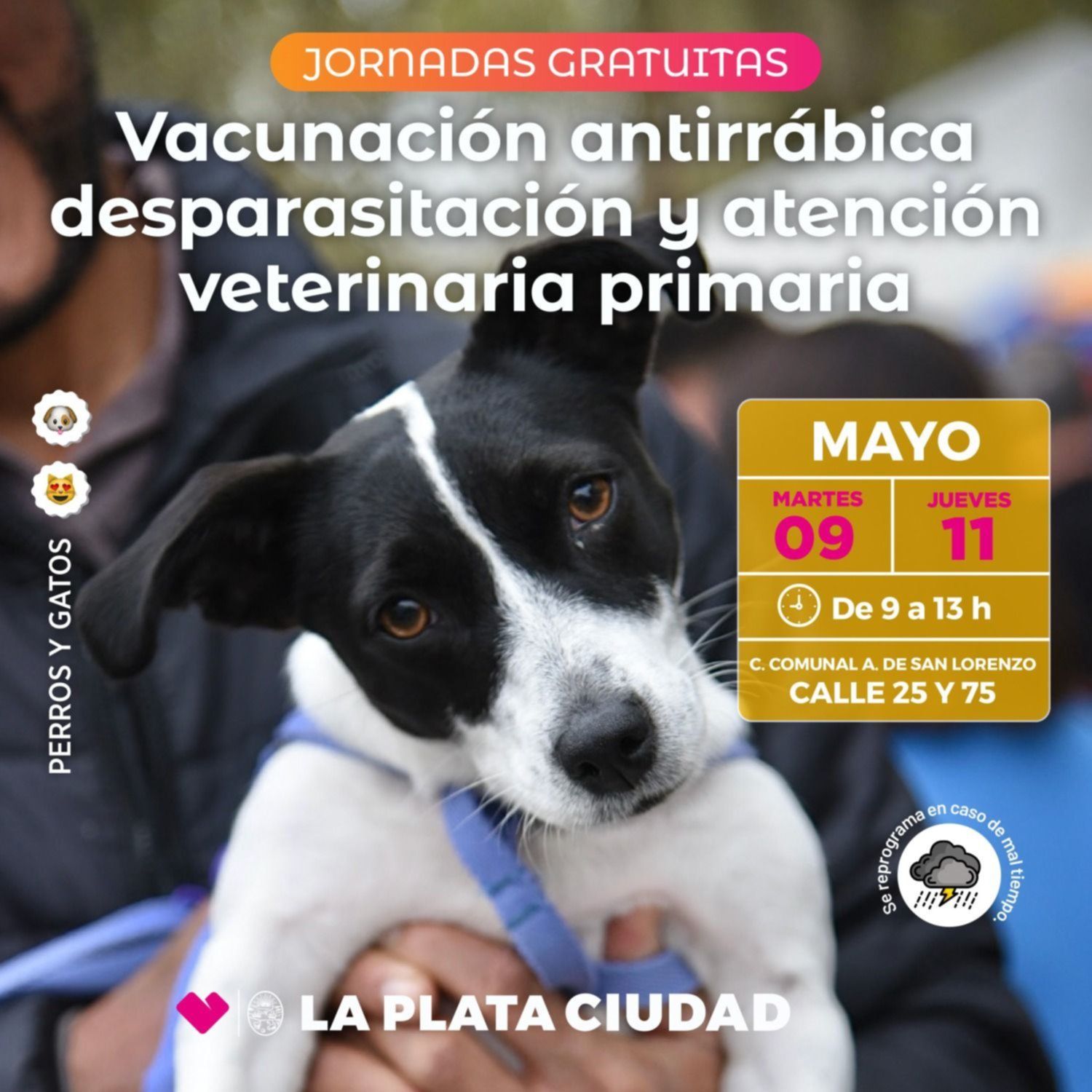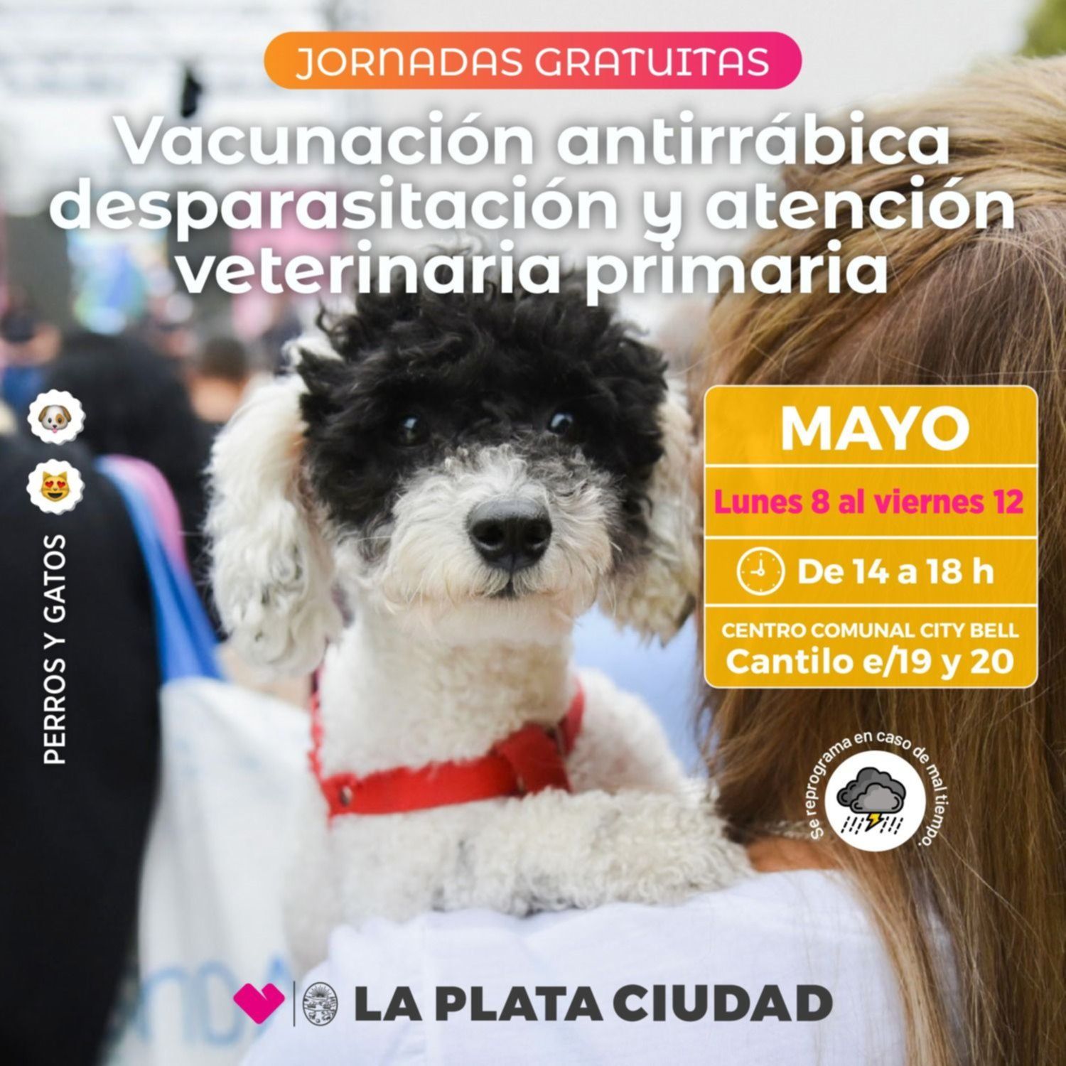Cabe destacar que el personal veterinario atenderá por orden de llegada y que los vecinos deben llevar a sus perros y sus gatos con métodos de sujeción seguros y, en caso de ser necesario, bozales.