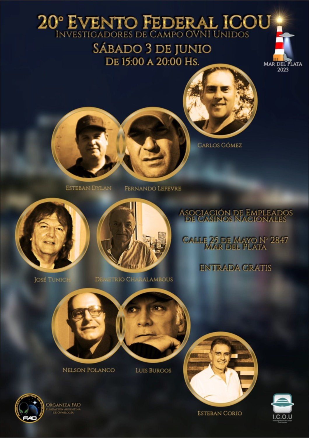 Se trata del 20° Evento Federal ICOU (Investigadores de Campo Ovni Unidos) que contará con la presencia de investigadores y estudiosos de todos estos tipos de fenómenos inexplicables en los cielos y hasta en los campos, que tienen que ver con avistamientos de objetos voladores no identificados, apariciones de huellas en la tierra y animales mutilados, entre otros.