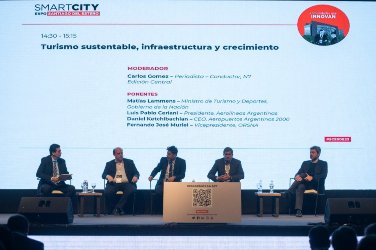 En la misma línea, agregó: “Esta exposición es parte de una política integral del gobernador Zamora, que se trata de traer grandes eventos a Santiago del Estero. Ya han llegado competencias deportivas de trascendencia internacional como el Gran Premio de MotoGP y el Mundial sub-20 y ahora este tipo de ferias que aportan conocimiento y experiencias de otras ciudades, donde la tecnología mejoró la calidad de vida de la gente. En ese sentido tenemos un gran camino por recorrer”. También participaron el presidente de Aerolíneas Argentinas, Pablo Ceriani; el presidente de Aeropuertos Argentina 2000, Daniel Ketchibatchian; y el vicepresidente del Organismo Regulador del Sistema Nacional de Aeropuertos (ORSNA), Fernando Muriel.