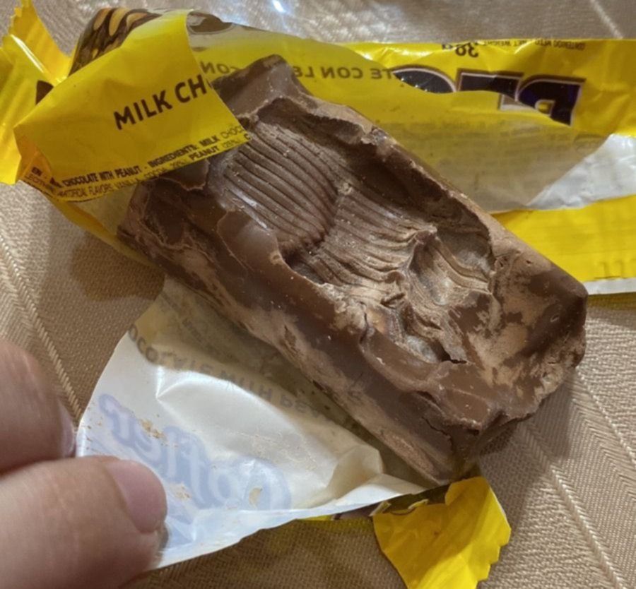 Sofía es una platense que estaba tranquila en su casa cuando su papá le regaló un chocolate Block. Cuando se decidió a abrirlo se encontró con una desagradable sorpresa y es que la golosina se encontraba en mal estado y había perdido su forma original, lo que lo volvía aún más repugnante.