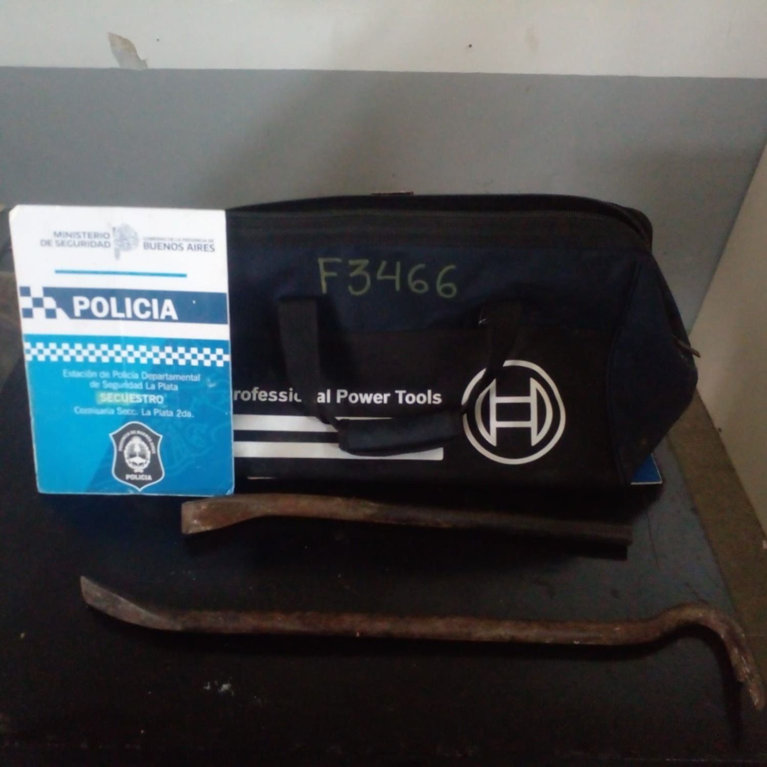 Una vez dentro, los agentes advirtieron que los sujetos tenían un bolso de color azul y negro y dos barretas de metal. Además, durante el procedimiento se incautó la escalera de aluminio extensible con la que entraron a la propiedad.