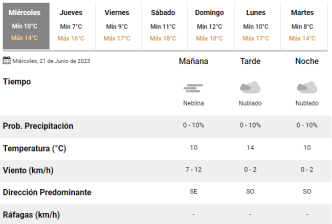 De acuerdo con las previsiones del Servicio Meteorológico Nacional (SMN), la primera jornada laborable de esta corta semana transcurrirá con un cielo completamente cubierto de nubes y una temperatura oscilando entre 10 y 14°C. Con una humedad en torno al 99%, el ambiente estará pesado e inestable durante casi todo el día.