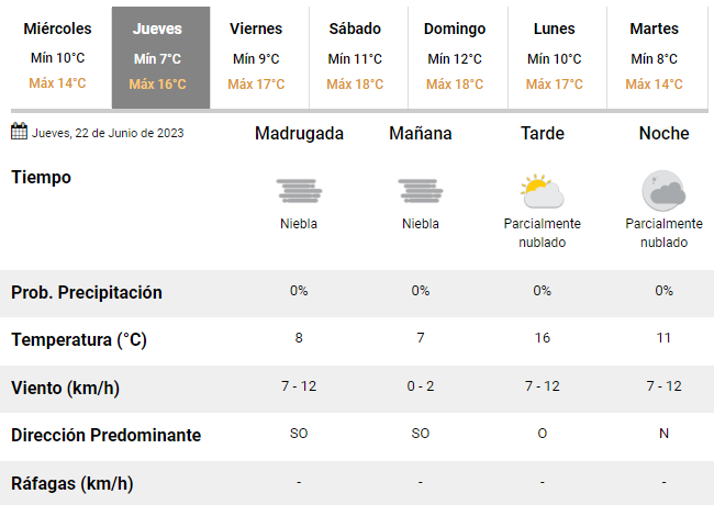 El sol recién volverá a asomar durante la tarde del jueves, día en el que la mínima será de 7°C y la máxima podría alcanzar un pico de hasta unos 16°C, ya sin chances de lloviznas.