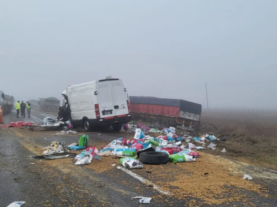 El trágico hecho sucedió cerca de las 9 a la altura del kilómetro 339, bajo una intensa neblina. Por motivos que se investigan, un camión marca Fiat Iveco con acoplado y una combi de la misma marca pero modelo Daily impactaron de frente a gran velocidad y terminar virtualmente destrozados.