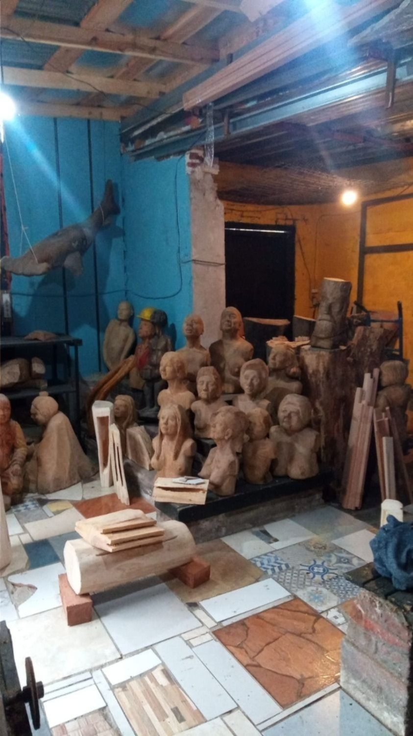 El taller de escultura urbana se encuentra a unos metros de la biblioteca Del otro lado del árbol y ambos espacios trabajan en forma conjunta. Allí se realizaron todos los juegos de madera que rodean a la biblioteca y otras esculturas presnetes en el parque. Además, Rigone hace obras para espacios públicos, de manera gratuita, “para transformar no lugares en lugares y hacer un poco más digna la vida de las personas”, explica el escultor, que lamenta: “Este tipo de cosas te saca un poco las ganas”.