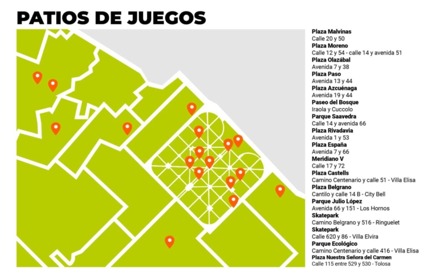 Tal como informó 0221.com.ar, la Comuna detalló uno por uno dónde estarán ubicados los nuevos espacios que serán renovados:
