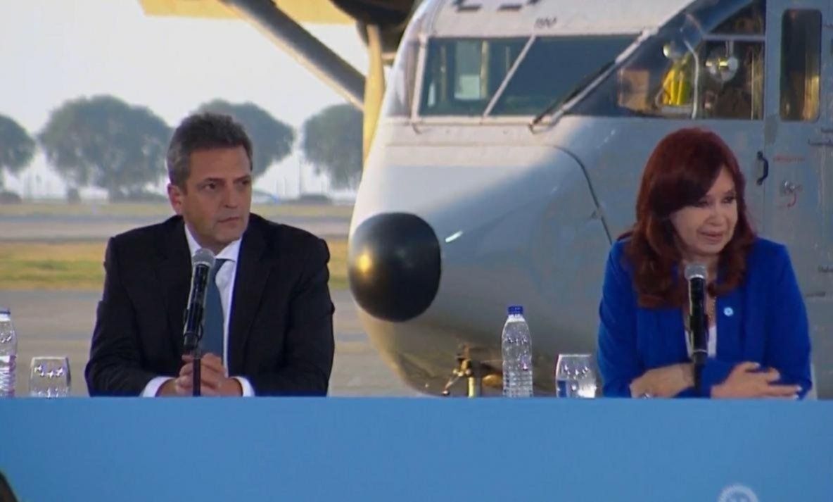La vicepresidenta de la Nación, Cristina Fernández de Kirchner, participó junto al ministro de Economía y precandidato presidencial de Unión por la Patria (UxP), Sergio Massa, del acto de recuperación del avión Skyvan PA-51, que fue utilizado en los llamados "Vuelos de la muerte" de la última dictadura militar. Es la primera actividad que comparten desde el cierre de listas del sábado pasado.