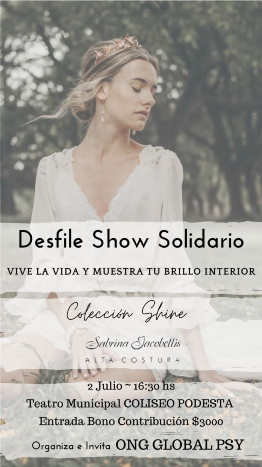 Global Psy y la diseñadora de Alta Costura Sabrina Iacobellis realizarán en La Plata el Desfile Solidario “Vive la vida y muestra tu brillo interior”. Será este domingo 2 de julio a partir de las 16.30 en el Teatro Coliseo Podestá de la Ciudad de La Plata.