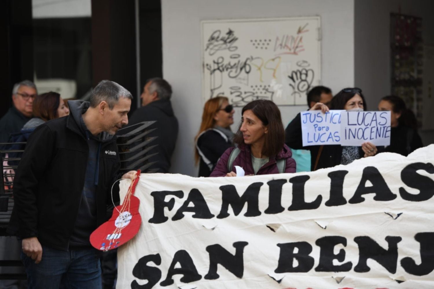 Por su parte, docentes autoconvocados del Colegio San Benjamín, al cual pertenece el Jardín de Infantes, manifestaron: "Nosotros hace 13 años sabemos que Lucas es inocente, en 2015 un Tribunal lo afirmó, los peritos oficiales lo confirman en sus declaraciones".